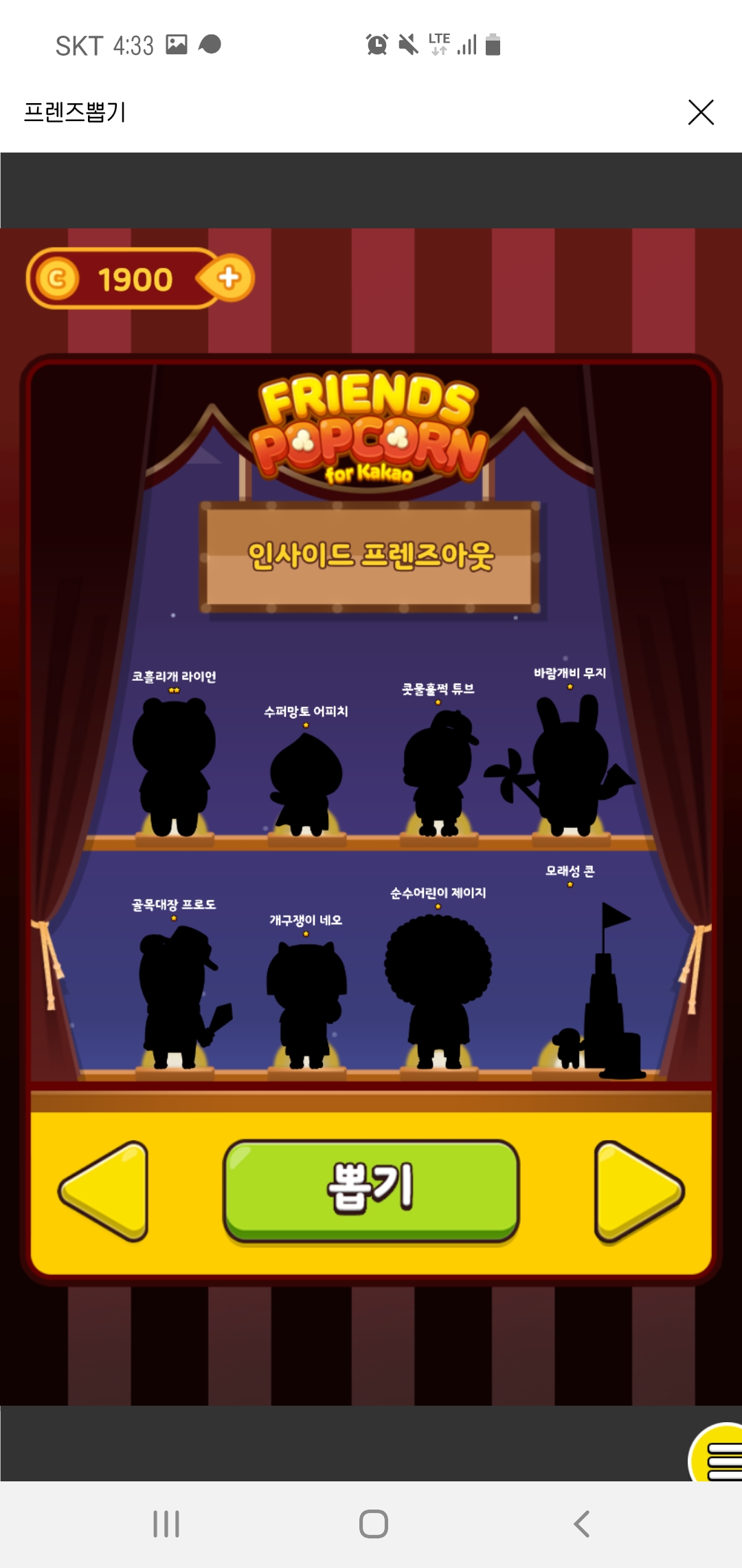 ์ธํ๋ฝ๊ธฐ๋ฅผ ์ํ ์ฝ์ธ์ ๋งค์ผ 2000์ฝ์ธ์ฉ ์ง๊ธํ๊ณ ์์ต๋๋ค. ๋จ, ๋งค์ผ ์์ด์ง ์๊ณ 2000์ฝ์ธ์ผ๋ก ์ด๊ธฐํ๊ฐ ๋ฉ๋๋ค. ์์ชฝ ํ์ดํ๋ฅผ ๋๋ฅด๊ณ ์ง๊ฒ๋ฅผ ์ฎ๊ธด ๋ค์ ๋นจ๊ฐ๋ฒํผ์ ๋๋ฌ์ฃผ๋ฉด ์ง๊ฒ๊ฐ ์๋๋ก ๋ด๋ ค์ค๋ฉด์ ๋ฝํ๋ ๋ฐฉ์์ธ๋ฐ์. ํ๋ฒ ๋ฝ๊ธฐํ ๋๋ง๋ค 100์ฝ์ธ์ด ์ค์ด๋ค๊ณ ์๋ก์ด ์นด์นด์คํ๋ ์ฆ๋ฅผ ๋ฝ์ผ๋ฉด 200์ฝ์ธ์ ์ค๋๋ค. ์ด๊ฒ์ด ์ด ๊ฒ์์ ๋ฉ์ถ ์ ์๊ฒ ํ๋ ์ด์ ์ด๊ธฐ๋ ํฉ๋๋ค. ํ๊ฐ์ง ๋ ๋ง์๋๋ฆฌ๋ฉด 2000์ฝ์ธ์ ๋ค ์ฐ๋ฉด ํ๋ฃจ ํ๋ฒ 500์ฝ์ธ์ ๋ ์ฃผ๋๊น ๋ง์๊ป ํ์ค ์ ์์ต๋๋ค.