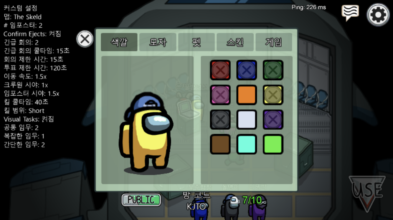 ์ด๋ชฝ์ด์ค์ ์บ๋ฆญํฐ๋ ์ฐ์ฃผ์ธ์ฒ๋ผ ์๊ฒผ๋๋ฐ์. ์ ๋ด ๊ฐ์ด๋ฐ ์๋ ๋ ธํธ๋ถ์ผ๋ก ์บ๋ฆญํฐ๋ฅผ ์ฎ๊ฒจ ํด๋ฆญํ๋ฉด ์๊น, ๋ชจ์, ํซ, ์คํจ์ ์ค์ ํด ๋ฐ๊ฟ ์ ์์ต๋๋ค. ์ฌ๊ธฐ์ ํซ๊ณผ ์คํจ์ ์ ๋ฃ์์. ์๊น์ ํ๋ ์ด์ด๋ง๋ค ๋ค๋ฅด๊ฒ ์ค์ ๋๋ฉฐ, ๋ค๋ฅธ ํ๋ ์ด์ด๊ฐ ์ฌ์ฉํ๋ ์์ ์ฌ์ฉํ ์ ์์ต๋๋ค.