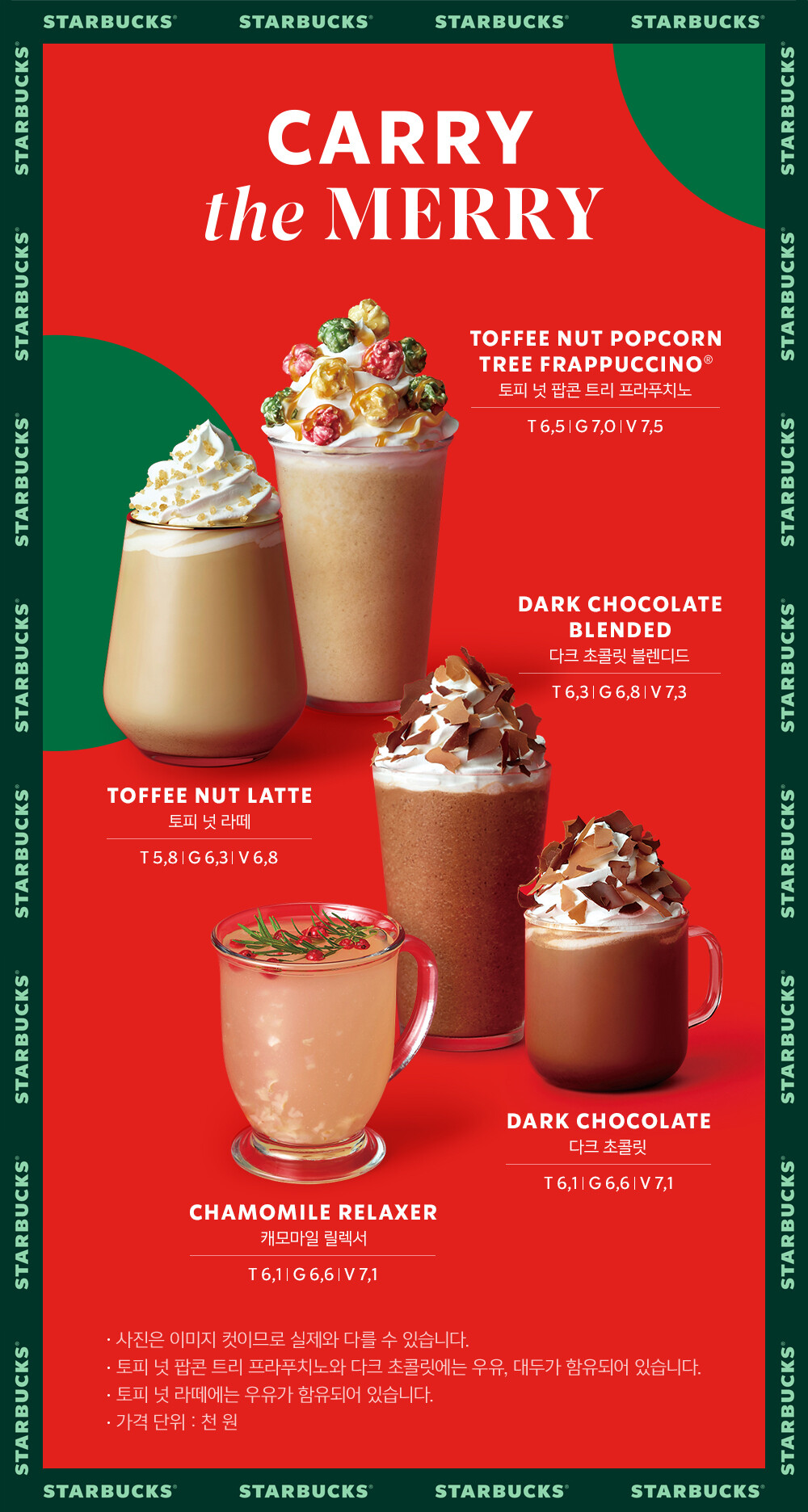 μ€νλ² μ€λ ν¬λ¦¬μ€λ§μ€ μμ¦μ λ§μ μλ£ 4μ’ κ³Ό νΈλ 6μ’ , κΈ°νμν(MD) μν 57μ‘°μΌ μλ 5μ’ λ±μ μλ‘κ² μΆμνκ³ λ³Έκ²©μ μΈ ν¬λ¦¬μ€λ§μ€ μμ¦μ μ§ννκ³ μμ΅λλ€. λ§€λ ν¬λ¦¬μ€λ§μ€ μμ¦μλ§ μκ°νλ μκ·Έλμ² μλ£μΈ ν νΌ λ λΌλΌλ₯Ό λΉλ‘―ν΄ ν¬λ¦¬μ€λ§μ€ νΈλ¦¬μ λ°μ§μ΄λ μ₯μλ¬Όμ λ€μν μμμ νμ½μΌλ‘ ννν ν νΌ λ νμ½ νΈλ¦¬ νλΌνΈμΉλ Έ, 리μΉ, λ λͺ¬κ·ΈλΌμ€, μΊλͺ¨λ§μΌμ΄ μ΄μ°λ¬μ§ μΊλͺ¨λ§μΌ 릴λ μ, λ¬μ½€ μμΈλ¦ν λ§μΌλ‘ λ§μΉ ν¬λ¦¬μ€λ§μ€ μ΄μ½λ¦Ώ μΌμ΄ν¬λ₯Ό μ¬ννλ―ν λ€ν¬ μ΄μ½λ¦Ώ λ± μλ£ 4μ’ μ μΆμνμ΅λλ€.