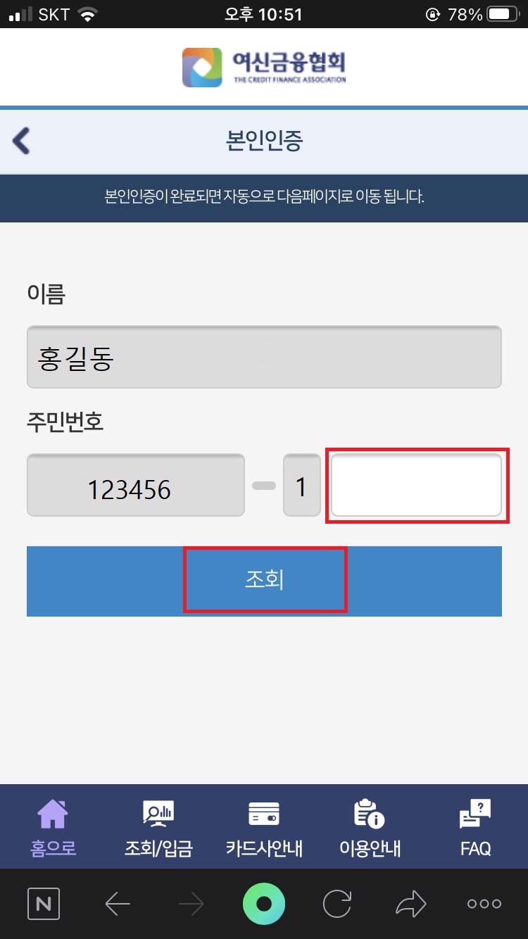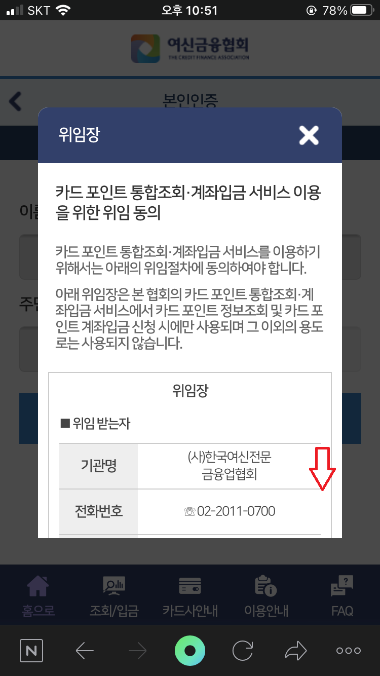 6. ๋ณธ์ธ ์ด๋ฆ, ์ฃผ๋ฏผ๋ฒํธ ๋ท์๋ฆฌ ํ์ธ ํ ์ต์ข ์ ์ผ๋ก ์นด๋ํฌ์ธํธ ํตํฉ์กฐํ๊ฐ ๊ฐ๋ฅํฉ๋๋ค.