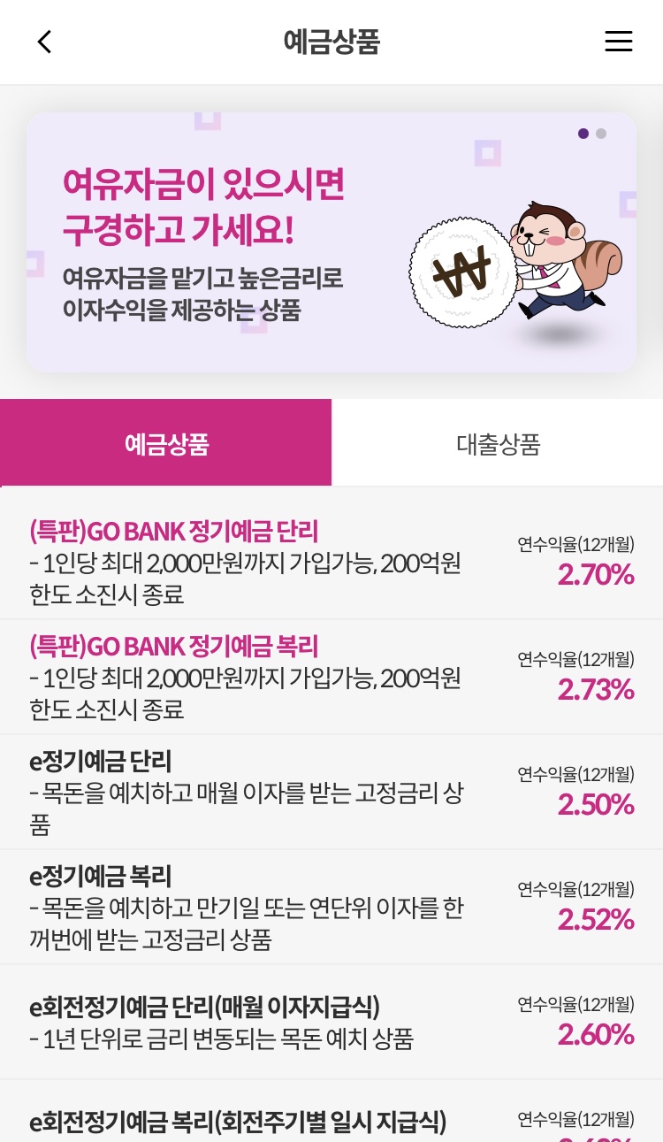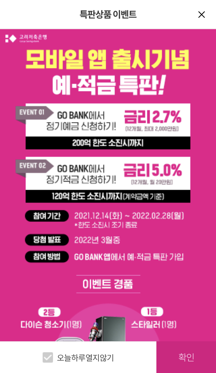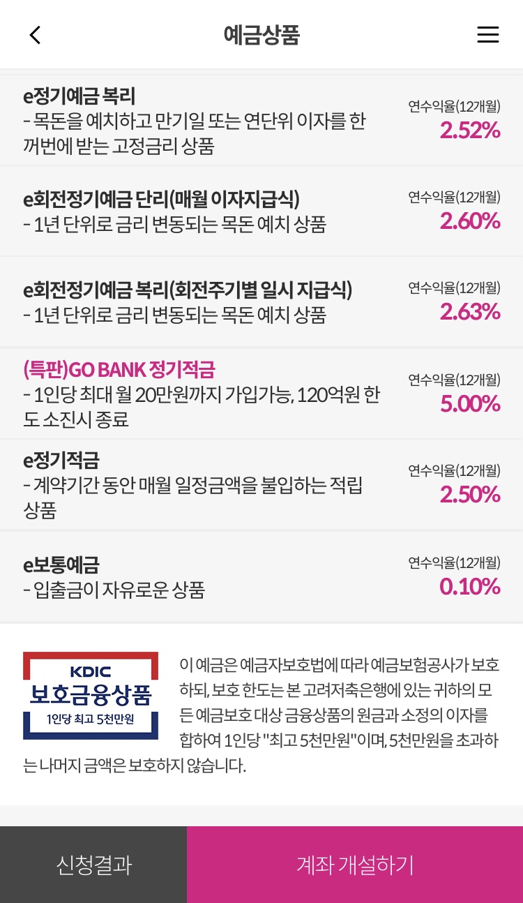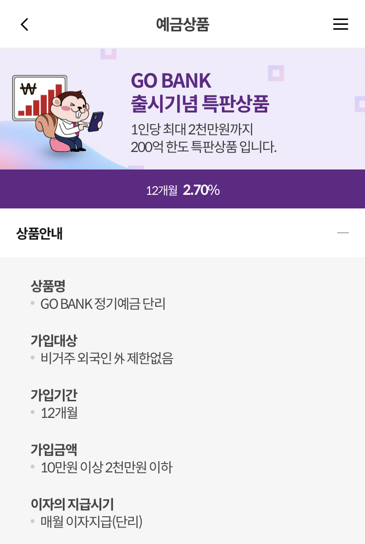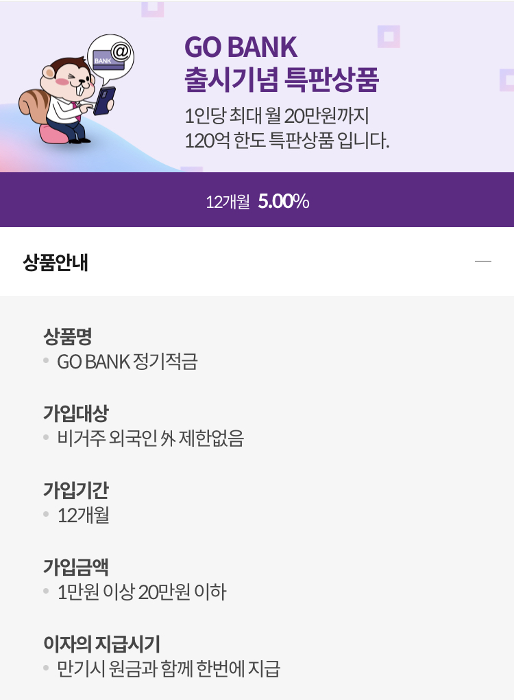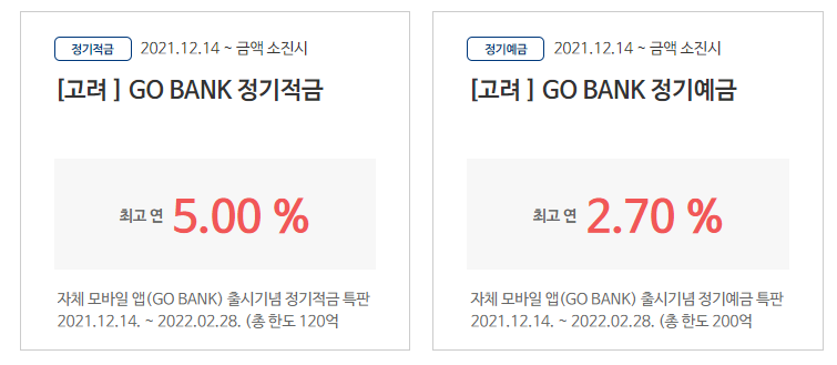 ๊ณ ๋ ค์ ์ถ์ํ GO BANK ์ ๊ธฐ์๊ธ 2.7% GO BANK ์ ๊ธฐ์ ๊ธ 5.0%